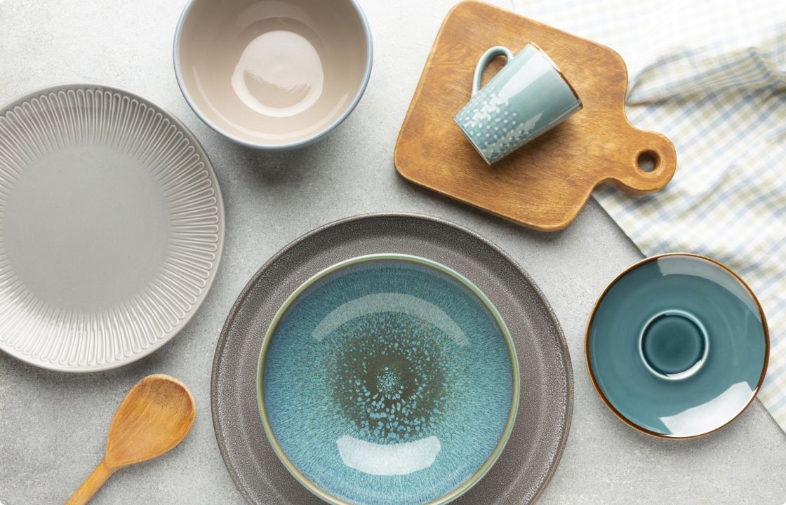 皿、グラス、スプーン、フォーク、箸、レンゲ、コーヒーカップ、スポンジ、洗剤、ゴミ箱
